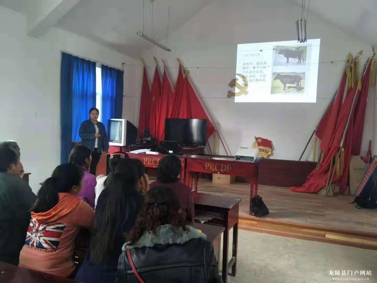 乡畜牧兽医站结合肉牛养殖产业,用图文并茂的方式给养殖户们讲述了养殖技术要点,一是选种,选好种才能养好牛;二是母牛产后护理,辅助犊牛及时吃初乳,掌握好此项技术也就为肉牛养殖打下了一层坚实的基础;三是青储料制作,用最简单的方式,把全株玉米秆粉碎、压实、储存,既可以保存玉米最初的营养,又解决了冬季饲草难以保障的问题。乡林业站从核桃树的中耕管理出发,将核桃施肥期和施肥方法、修枝打杈、病虫害防治等技术讲清讲透。乡农技站结合青早豌豆产业,一方面给农户现场演示种植技术,另一方面就常见病虫害识别与防治和农户进行交流讨论。结合我乡“梯形气候”的特点,对不同的区域进行相应的指导。