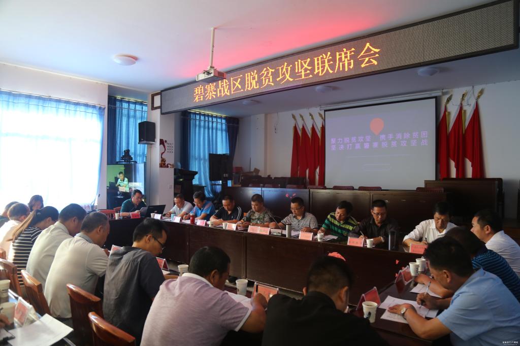 碧寨战区副政委、副县长杨俊通报了脱贫攻坚时间节点,明确2018年所有贫困村出列,贫困发生率在1.5%以内的目标,要求所有帮扶干部职工落实好“三项机制”,做好“三同工作”,加强帮扶责任心,压实包村单位责任,做好举证工作。