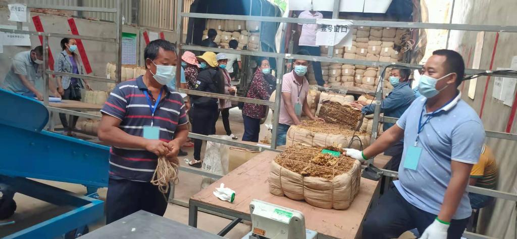 碧寨乡共有香料烟收购点1个,在收购现场工作人员对香料烟收购时间、水分控制、打包要求、分级等几方面进行了讲解和部署。烟农排着队接受体温检测,有序进入收购地点,看着自己的烟包定级、上称,烟农脸上都洋溢着丰收的喜悦。据统计,2020至2021年产季碧寨乡香料烟种植面积达到1565亩,覆盖群众367户,预计2021年户均增收300元。