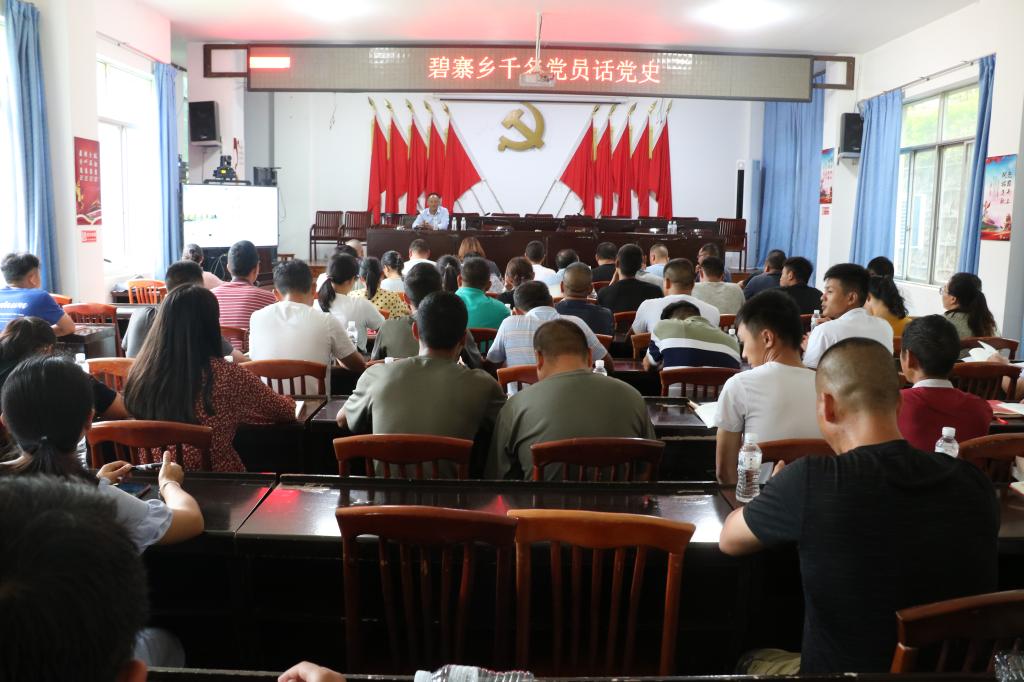 党史学习教育开展以来,碧寨乡创新学习形式,丰富学习载体,强化学用结合做到“规定动作”不走样,“自选动作”有创新。乡村组“3+1”模式,通过重温入党誓词、精读“四史”、齐唱红歌和“我为群众办实事”等活动,推动党史学习教育入脑入心。