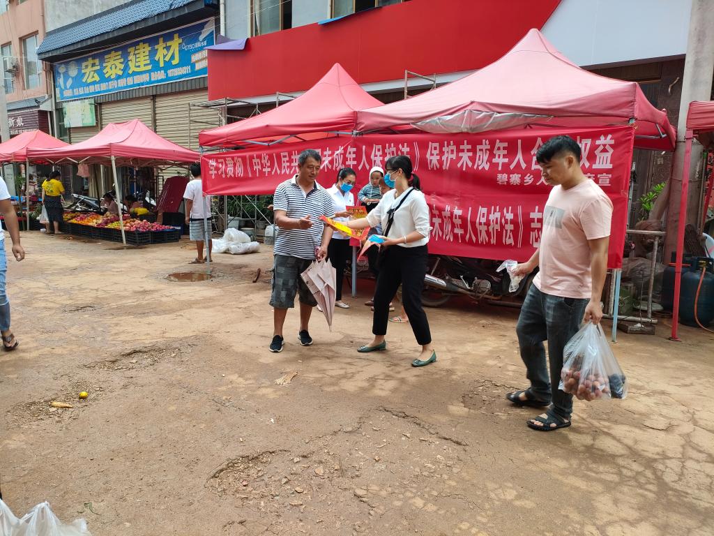 7月1日上午,碧寨乡社会事务办联合乡司法所组成志愿宣传队,在农贸市场积极开展相关宣传。活动现场,志愿者积极向群众发放宣传资料,并用通俗易懂的语言为群众讲解新修订的未成年人保护法的相关法律规定。