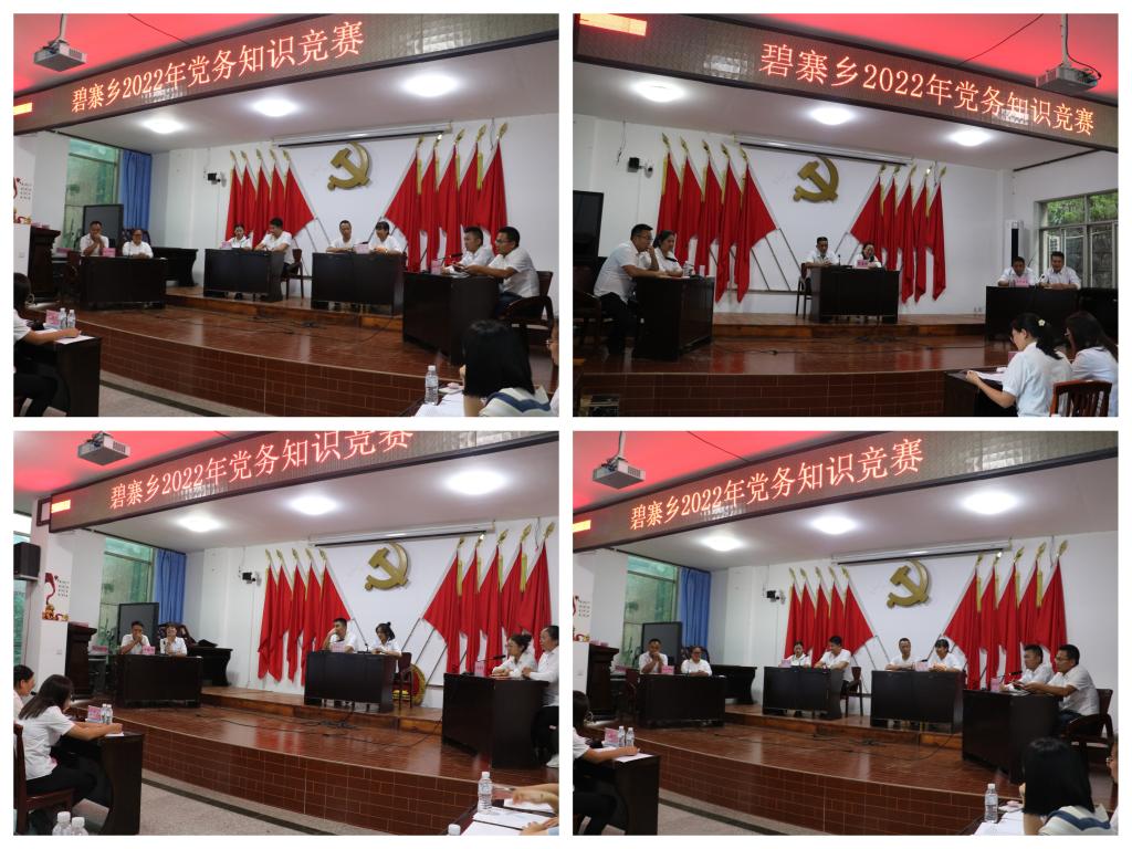“以赛促学”激发奋进力量。为更好检验党务干部的学习成果,各村(社区)和乡直党支部共13支队伍参加了党务知识竞赛。乡党委提前谋划,精心准备,结合基层党建工作实际,精心设计党务知识竞赛试题,制定比赛规则及流程。试题包含政治理论、基础党务、碧寨乡情等内容,设置了必答题、抢答题、风险题三种题型。竞赛现场,各参赛队员团结协作,以流利精彩的回答赢得了现场观众的热烈掌声,在抢答和风险题环节,各参赛选手你追我赶,互不相让,现场气氛热烈活跃,真正达到以赛促学、以学促干的目的。