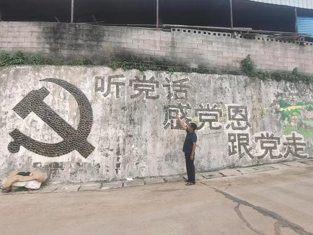 碧寨村坚持把农村人居环境整治作为乡村振兴的硬任务,动员各方力量积极参与,整合各类资源强化保障,清垃圾、改厕所、治污水,着力提升农村人居环境质量,加快建设生态宜居美丽乡村。一是人居环境整治立竿见影。碧寨村集中精力在全村开展人居环境整治,集中攻坚了一批农村环境卫生中的老大难问题。实行“户分类、组收集、村清运”的农村生活垃圾处理模式,将村庄保洁、公厕维护纳入公益性保洁员管护范围,切实提高保洁能力。科学有序推进农村改厕工作,全村累计建成农户卫生厕所354座,普及率达到99.7%,建成卫生公厕7个,人居环境得到较大提升。二是增绿添美扮靓村庄。2022年以来,碧寨村因地制宜,对进村通组道路、房前屋后空地进行清理,制定村庄绿化美化行动计划,用砖和瓦片修建特色围墙187.69平方米,种植三角梅145盆、紫薇花2盆、芒果130棵,既改善了村庄环境,也让家门口成为了增收致富的“宝地”,切实实现了经济效益和生态效益的有机统一。城墙山路口用鹅卵石镶嵌的党徽,表达了党员群众“听党话、感党恩、跟党走”的信心与决心。