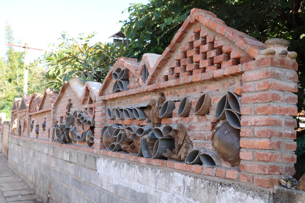 “我们结合本村实际,制定了村庄绿化美化行动计划,然后用砖和瓦片修建了特色围墙,种植三角梅、紫薇花、芒果树等,既改善了村庄环境,也让家门口成为了增收致富的‘宝地’,切实实现了经济效益和生态效益的有机统一。”碧寨村党总支书记、村民委员会主任段国昌说道。城墙山路口用鹅卵石镶嵌的党徽,表达了党员群众“听党话、感党恩、跟党走”的信心与决心,沿着小组道路墙壁上绘画的都是碧寨的历史文化,更是为碧寨村乡风文明画上了浓墨重彩的一笔。