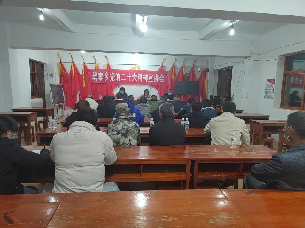 为深入学习宣传贯彻党的二十大精神,切实把党员干部和各族群众的思想统一到党的二十大精神上来,把力量凝聚到党的二十大确定的各项目标任务上来,碧寨乡充分发挥宣讲团、领导干部、驻村工作队等“宣传员”作用,迅速组织党的二十大精神进机关、进村(社区)、进支部、进校园、进集市、进农户“六进”宣讲活动,让党的二十大精神在基层迅速升温。