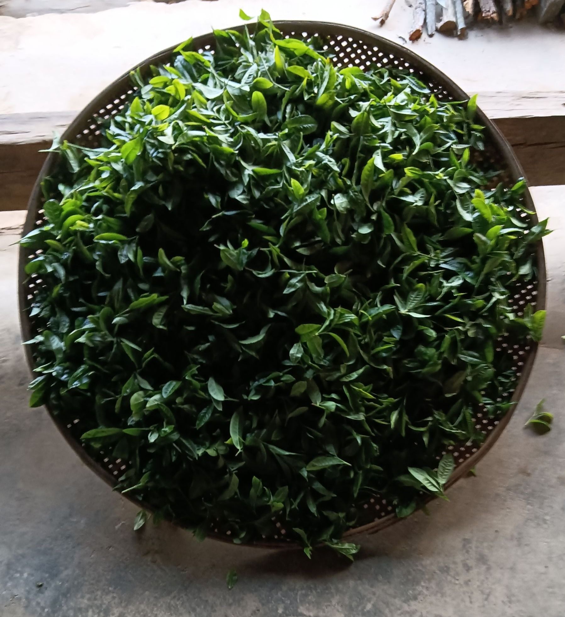 茶叶制作采用传统手工制茶方式。首先,把采摘回来的鲜叶铺开,用心挑拣“一不小心”捉坏的叶子;其次,把挑拣好的茶叶晾至萎凋成柔软状态;然后,由制茶师傅开始进行杀青、揉捻、发酵等工序;最后,在阳光下晾晒至干,收装,接下来就是慢慢享受半坡古树茶的时间了。