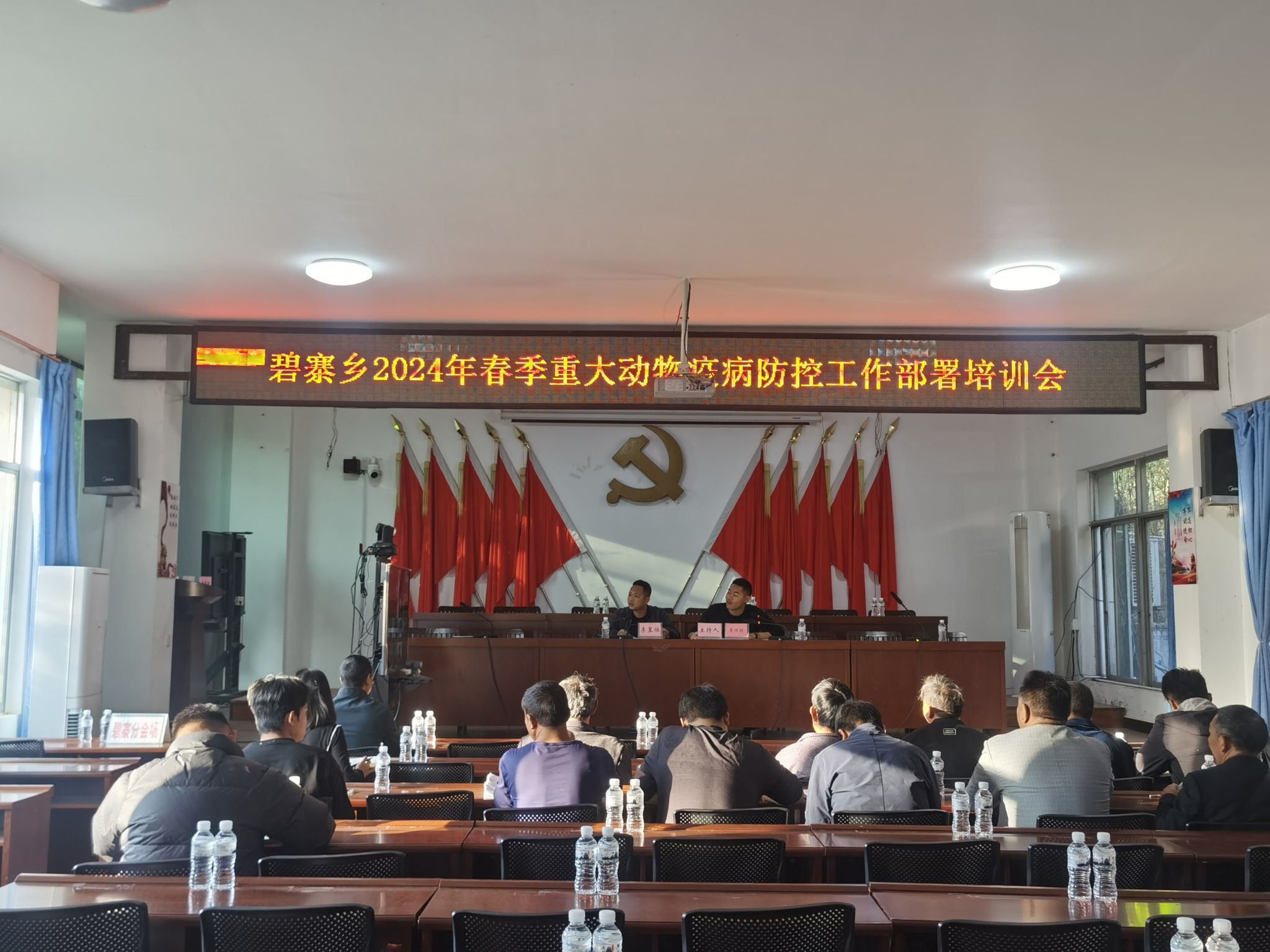 为确保春季动物防疫工作高效高质推进,切实保障畜牧业生产安全。3月1日,碧寨乡召开2024年春季重大动物疫病防控工作部署培训会,分管农业综合服务中心副乡长、乡农业综合服务中心、犇鑫肉牛合作社、各村(社区)党总支书记及防疫员等40余人参会。