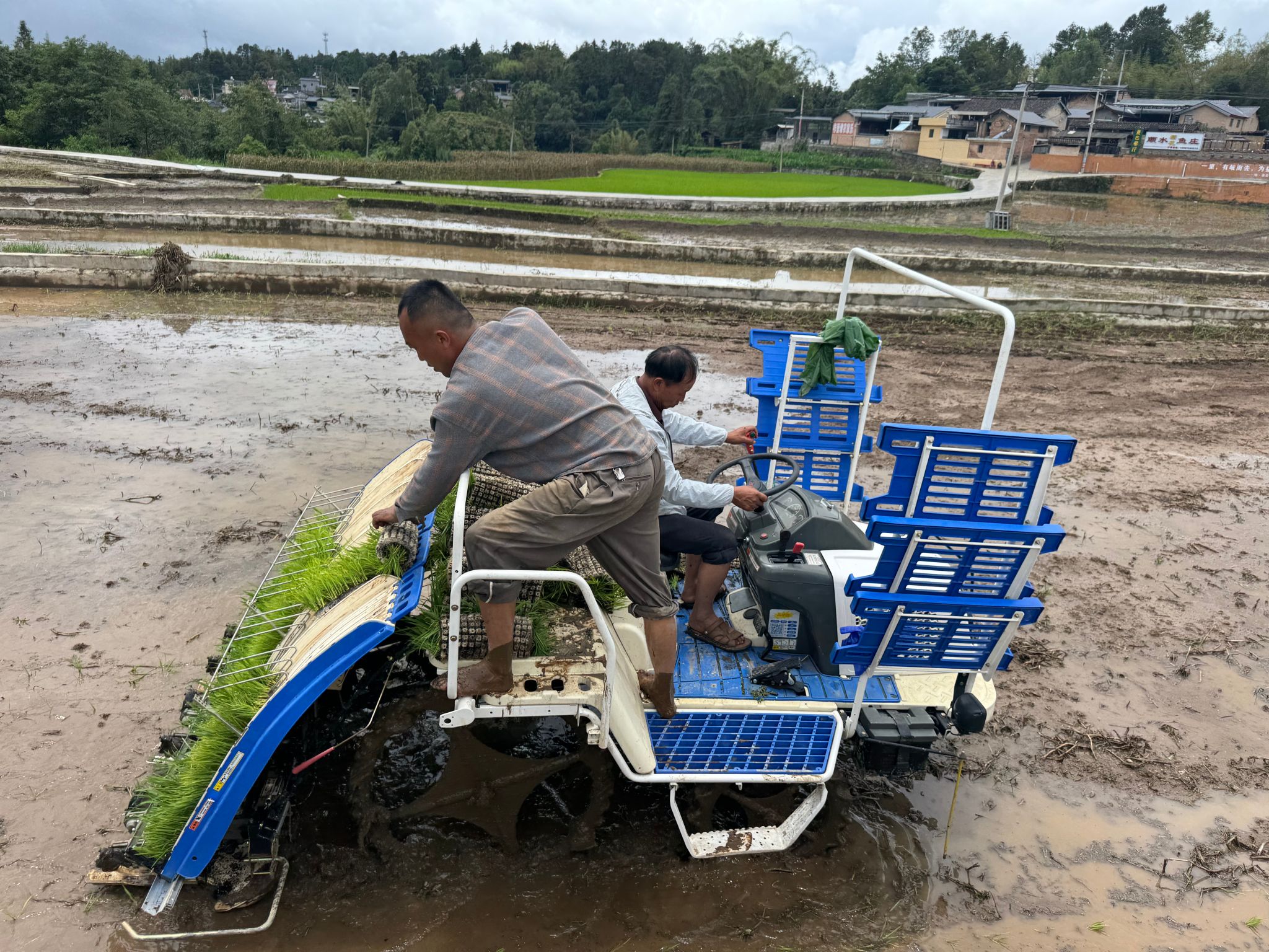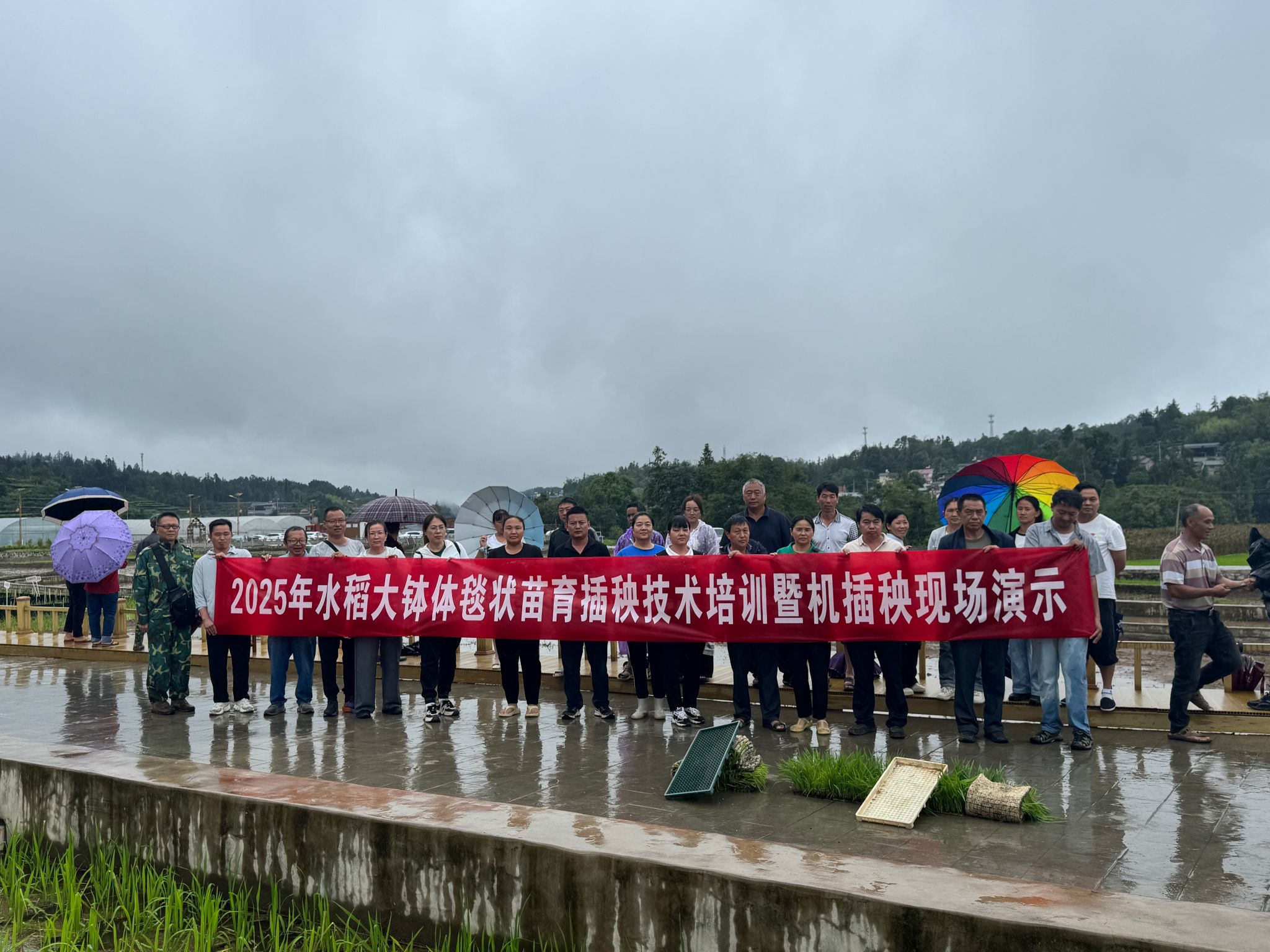 六月的雨屏,蒙蒙细雨如约而至,薄雾如蝉翼笼罩层峦叠翠的山峦,伴随着翩跹展翅的白鹭,为龙江勐柳百亩梯田增添了几多神韵。随着一声轰鸣,乘坐室高速插秧机缓缓入田,“2025年水稻大钵体毯装苗育插秧技术培训暨机插秧示范点现场演示”正式拉开了序幕。