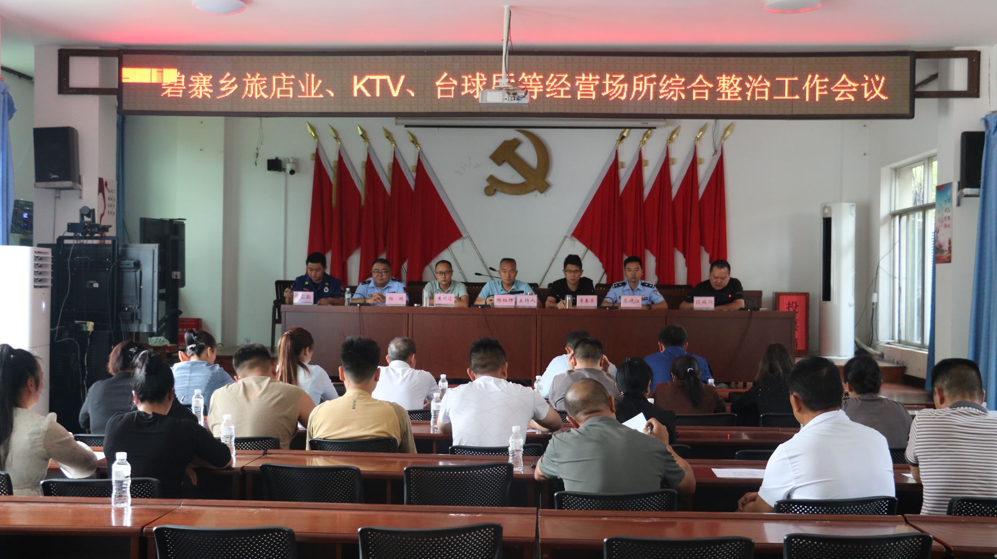 为进一步规范碧寨乡辖区内旅店业、KTV、台球厅等经营场所的经营管理秩序,强化安全生产责任落实,有效遏制各类违法违规行为,切实消除治安、消防等安全隐患,营造健康、有序、安全的经营环境,全力保障人民群众生命财产安全和社会稳定。4月17日,碧寨乡平安法治办、司法所、派出所、综合行政执法队、市场监督管理所等部门协同辖区内旅店、KTV、台球厅等25家经营主体召开综合整治工作部署会议。此次会议旨在分析当前我辖区相关行业存在的问题,引导经营主体全面排查各类安全隐患,确保经营场所的安全与稳定。