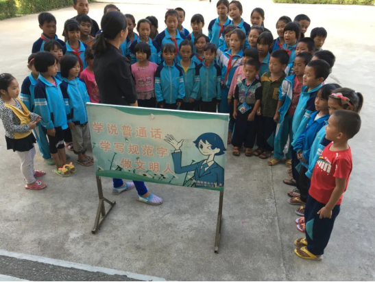 实施“童语同音”工程,打造各族青少年交往交流交融“同心路”。“学校教育+普通话”。深入实施国家通用语言文字普及提升工程。把语言文字规范化内容纳入学校常规管理,纳入培养目标和有关课程标准,纳入师生技能训练之中,渗透到德育、智育、体育、美育和社会实践教学活动中。利用主题班会、黑板报、宣传栏、校园广播等多种形式进行宣传,激发师生对国家通用语言文字的认同感、自豪感,大力营造使用国家通用语言文字的生活环境和社会氛围,促进各族青少年交往交流交融奠定语言沟通基础。“职业技能+普通话”。依托红色劳务、劳动力技能培训,采取固定服务和流动服务相结合的形式,为农村电商人员、旅游服务人员、进城务工人员、农村妇女、易地扶贫搬迁安置点群众开展普通话推广培训。截至目前,共开展普通话培训3批次、1400余人次。